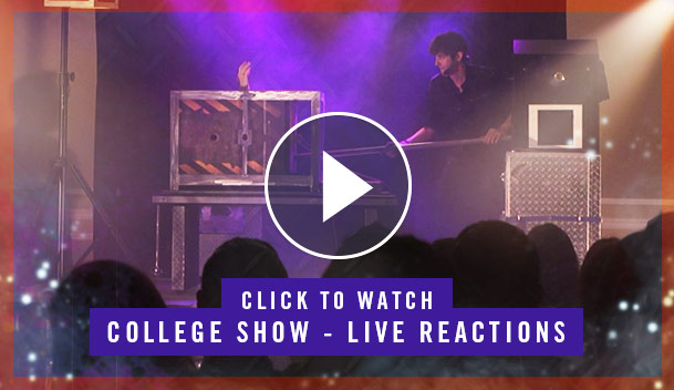 Keeping costs down is what we strive for, knowing that college budgets are often limited. So we plan with our heads, making sure we cut corners in our travels, but NEVER with our show! The result is an extraordinarily incredible, fun, entertaining, edge-of-your-seat experience at a VERY reasonable price. Plus, depending on your location, we often provide a discounted block booking rate without needing to find other colleges to join! And because The Extreme Magic of Eric is self-represented, we are super easy to work with and flexible to meet your needs, ensuring that your college gets the lowest rate.
